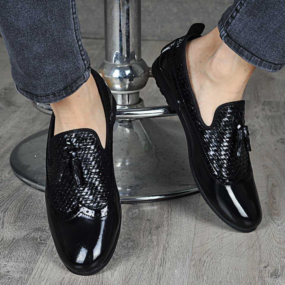 Çyr Püsküllü Oxford Ayakkabı Siyah Rugan