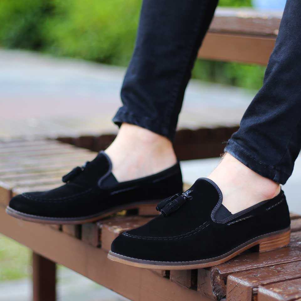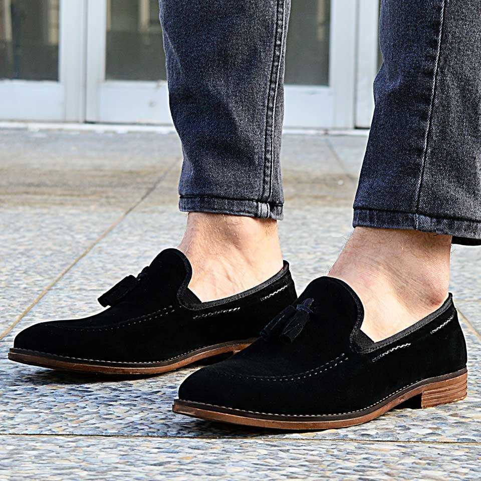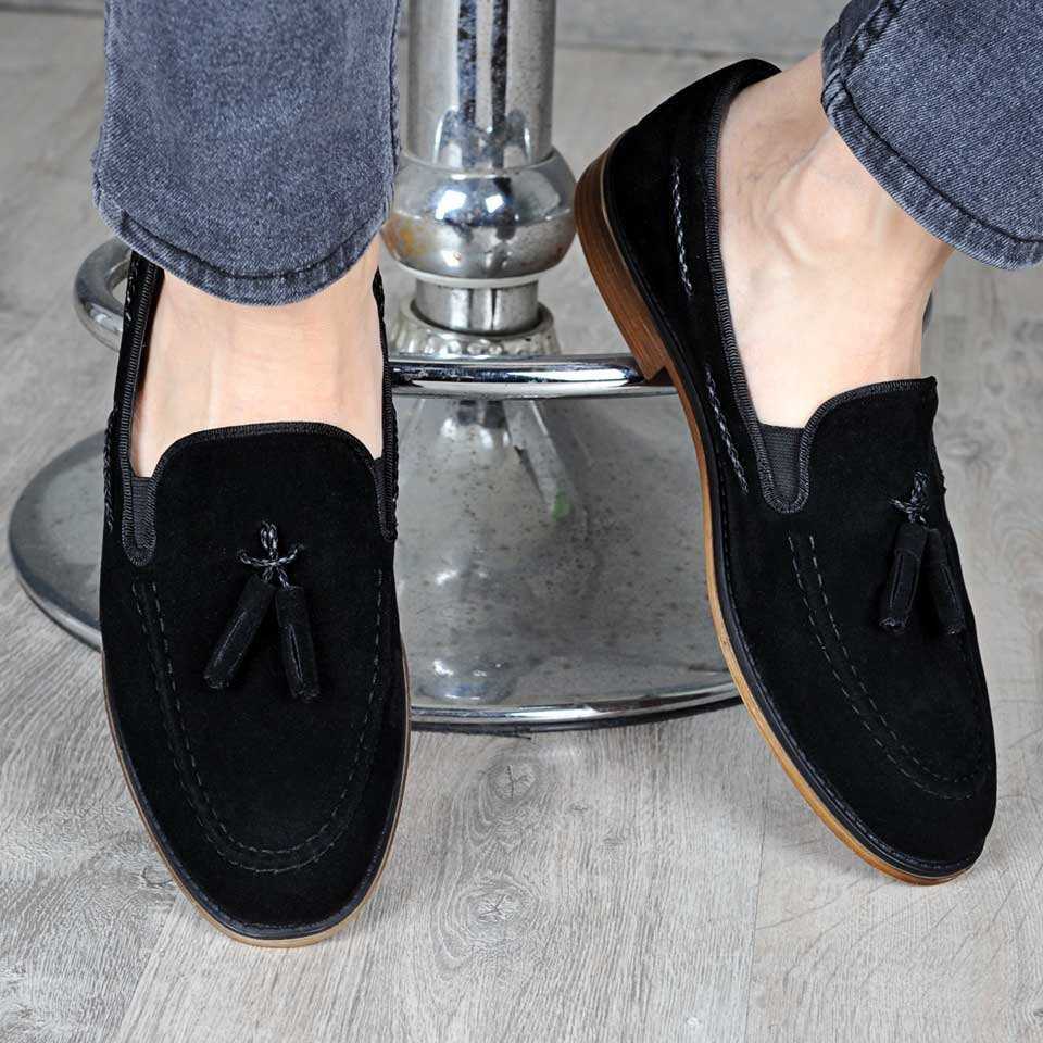 Çyr Püsküllü Erkek Siyah Süet
