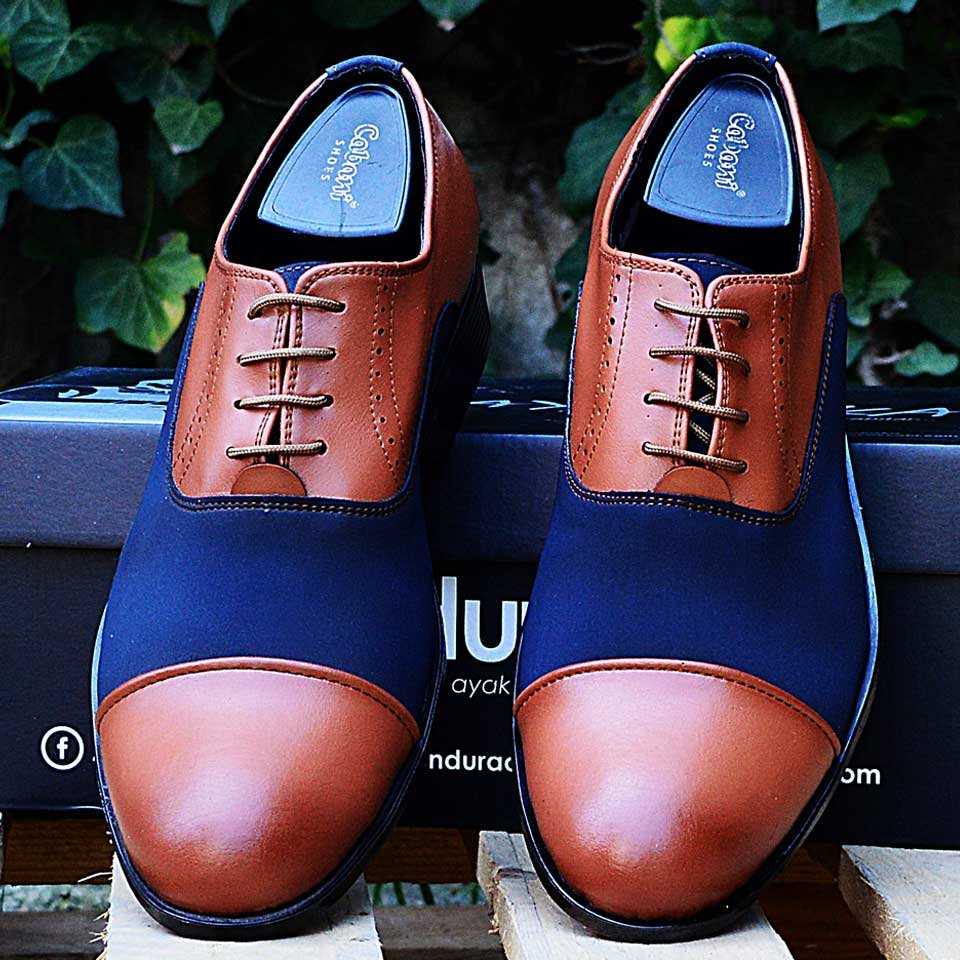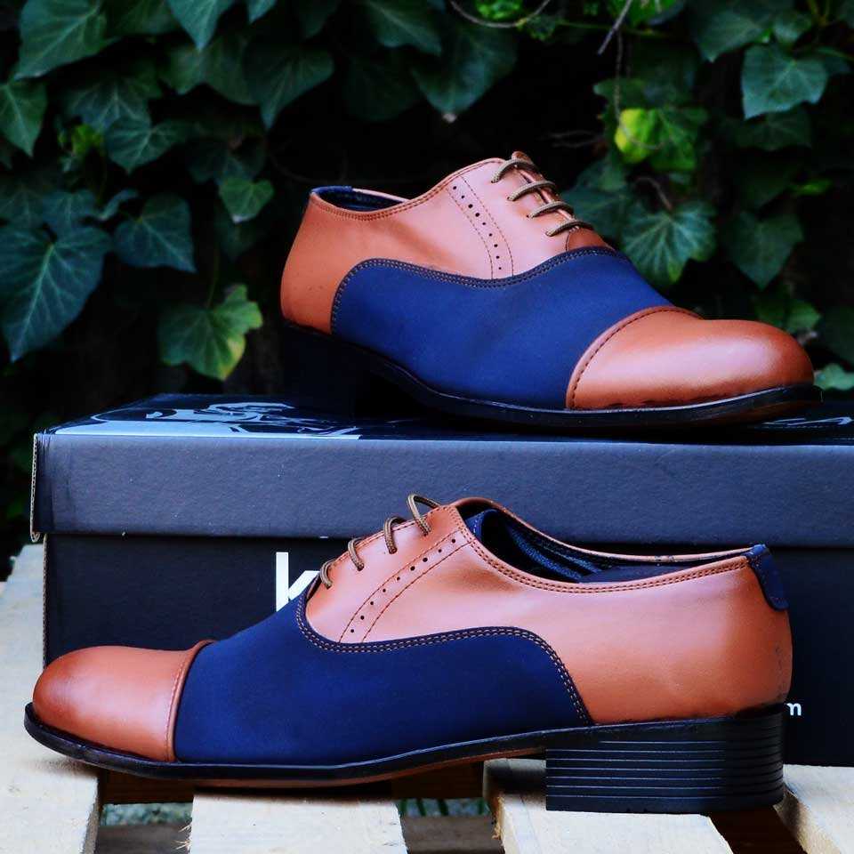 KND58 Erkek Klasik Ayakkabı Taba Lacivert Cilt Süet