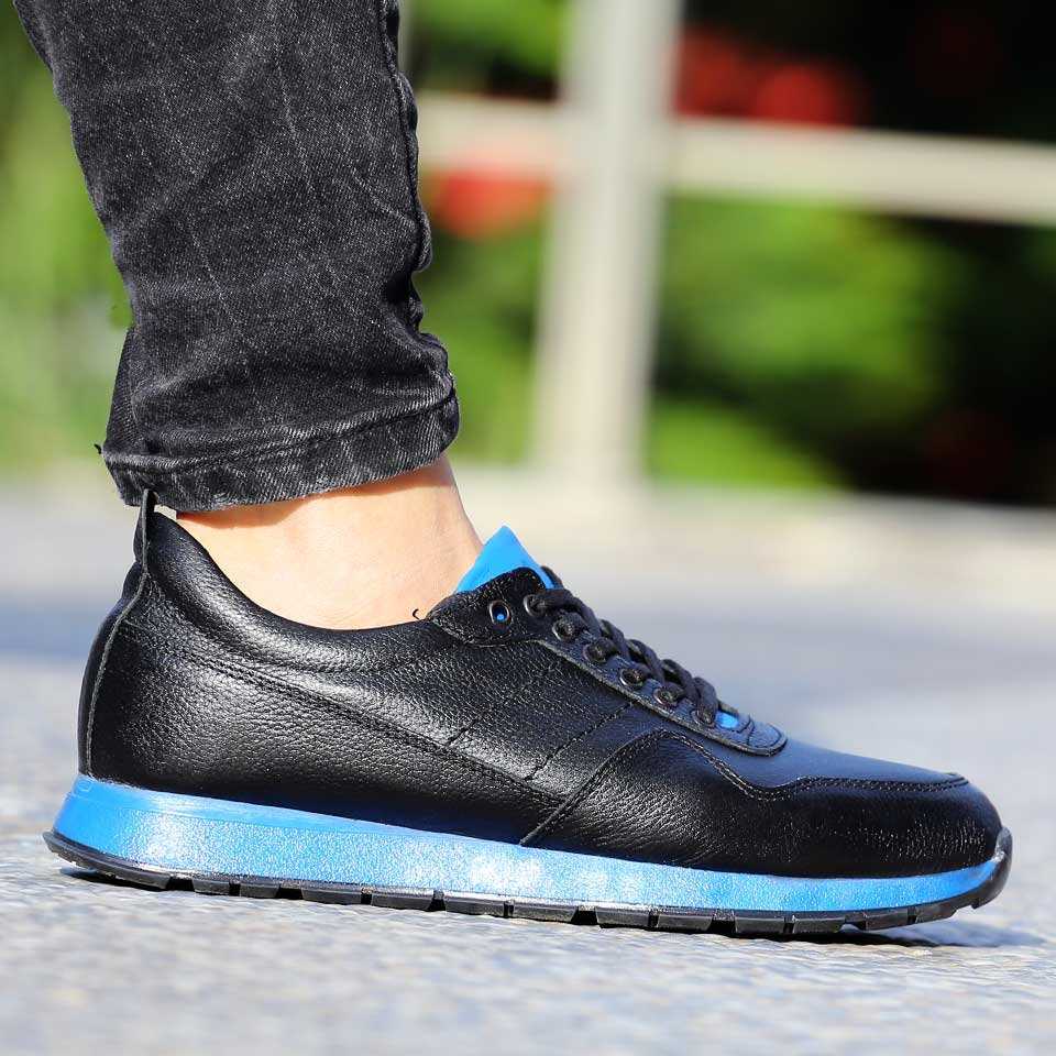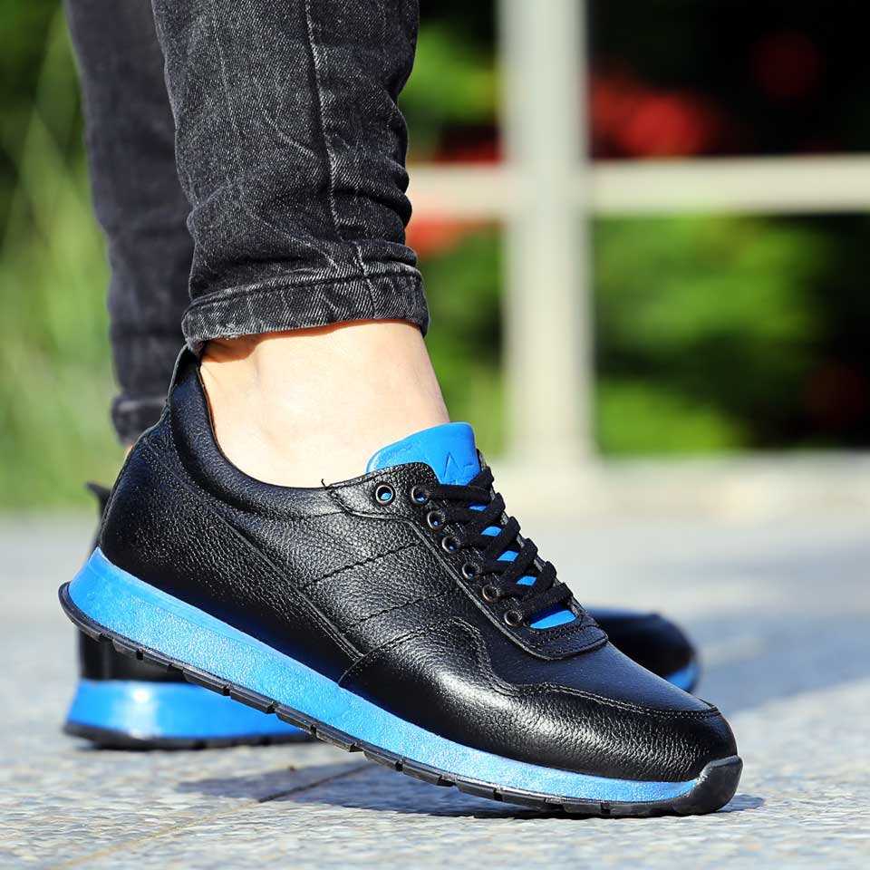 Hakiki Deri Erkek Ayakkabı Siyah Mavi