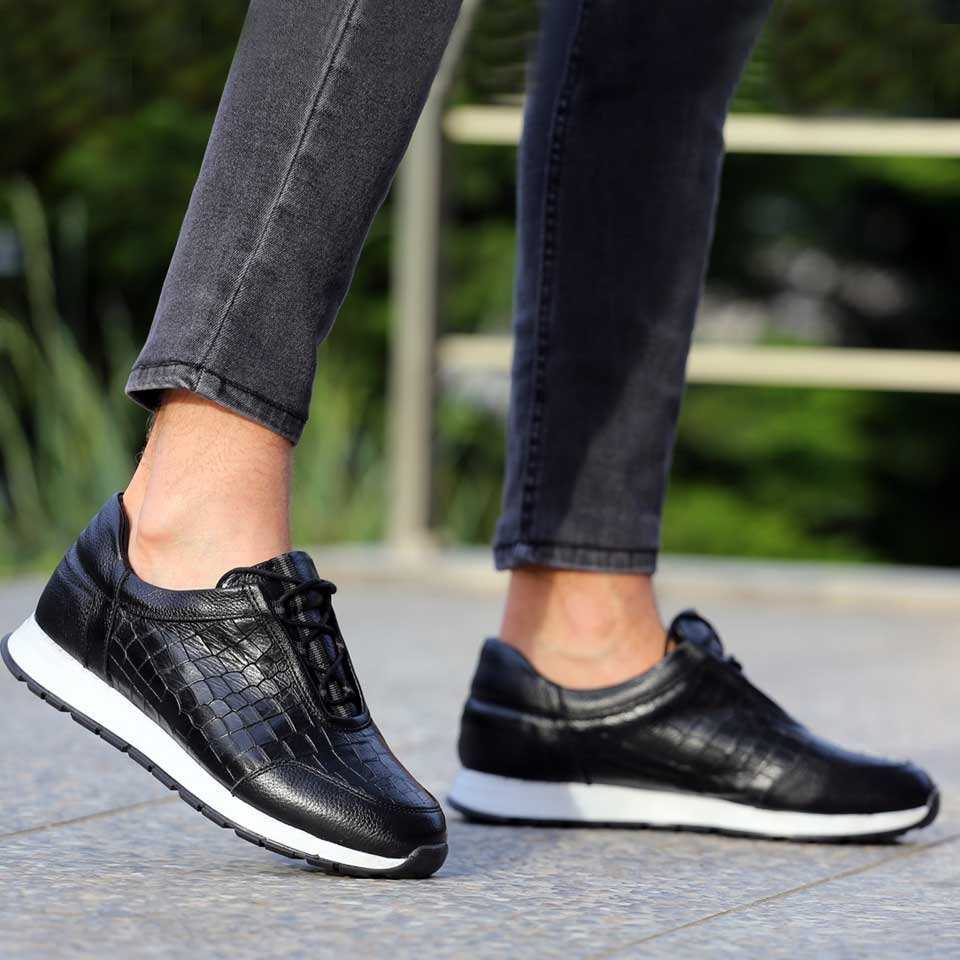Hakiki Deri Kare Detaylı Ayakkabı Siyah