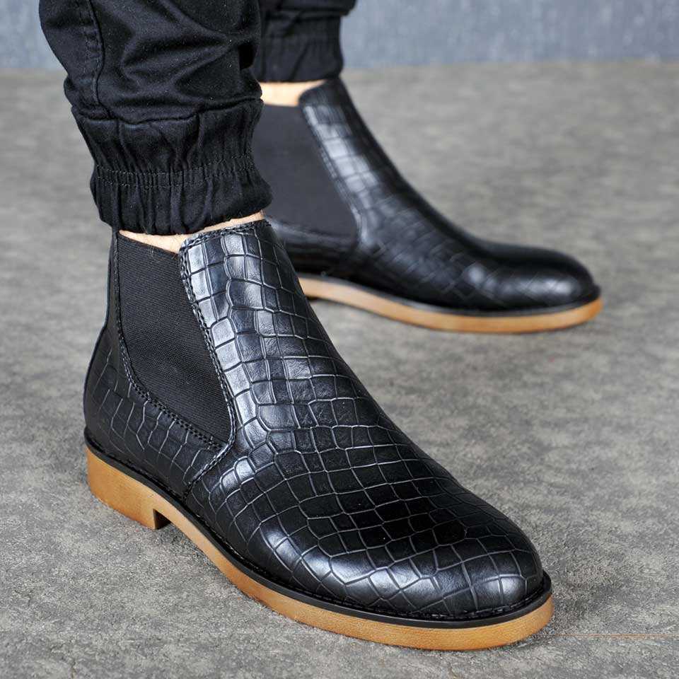 Dst Timsah Baskılı Lastikli Erkek Bot Siyah
