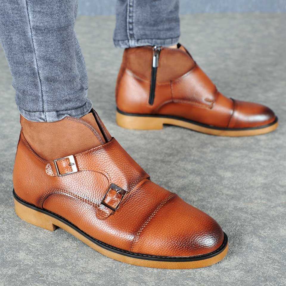 Dst Çift Tokalı Fermuarlı Erkek Bot Taba