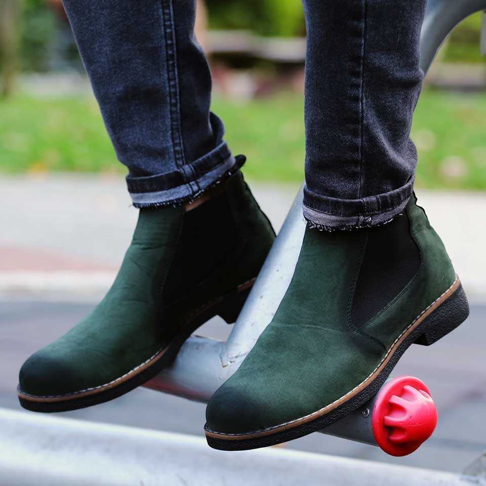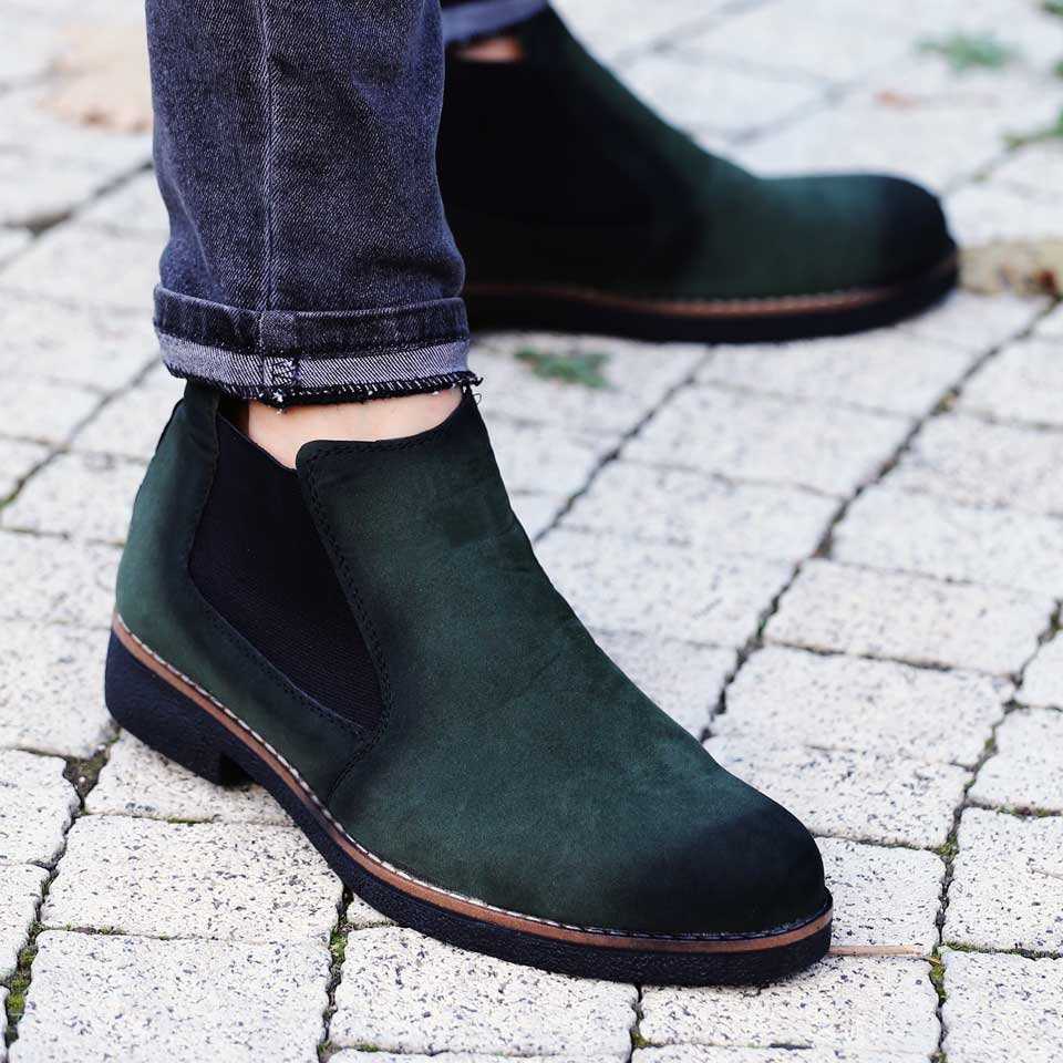 Emr Erkek Bot Lastikli Süet Haki Yeşil