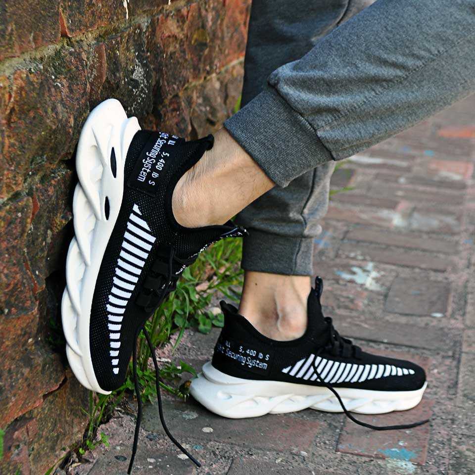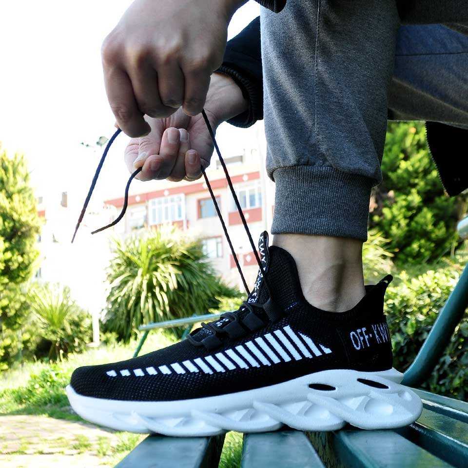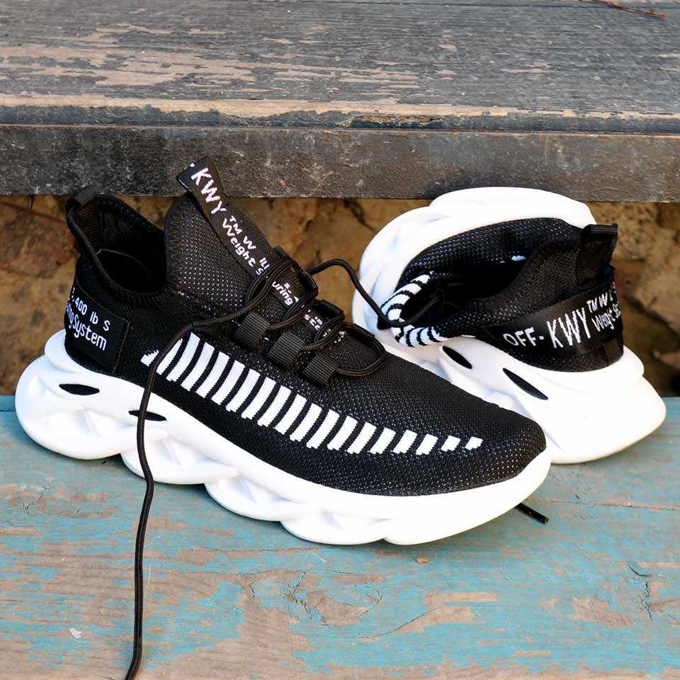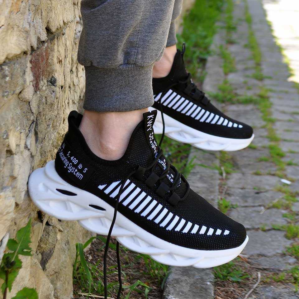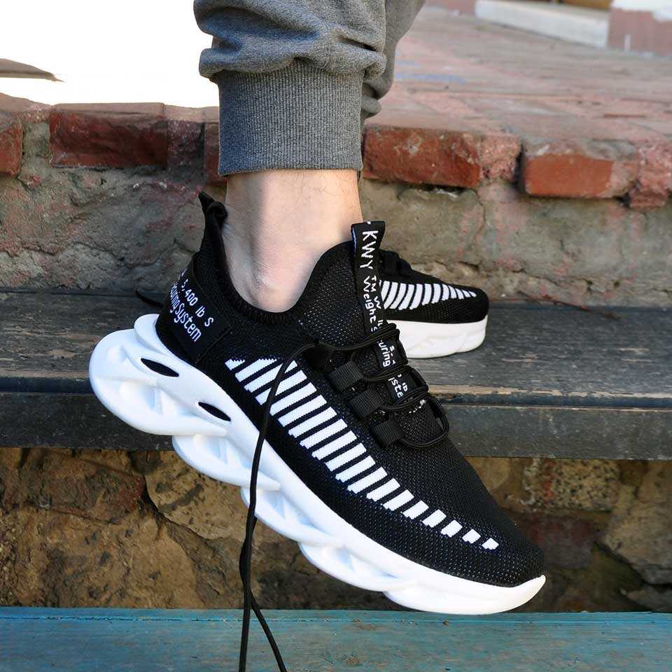 Triko Yüksek Taban Erkek Spor Ayakkabı Siyah Beyaz