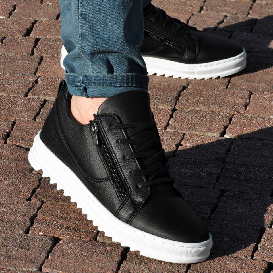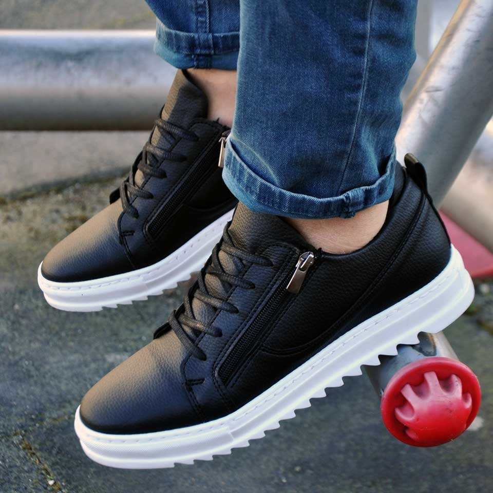 Çift Fermuar Günlük Erkek Ayakkabı Siyah Beyaz