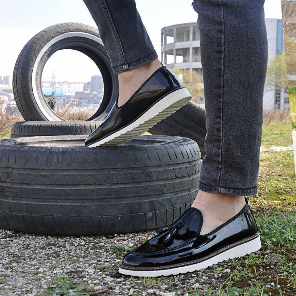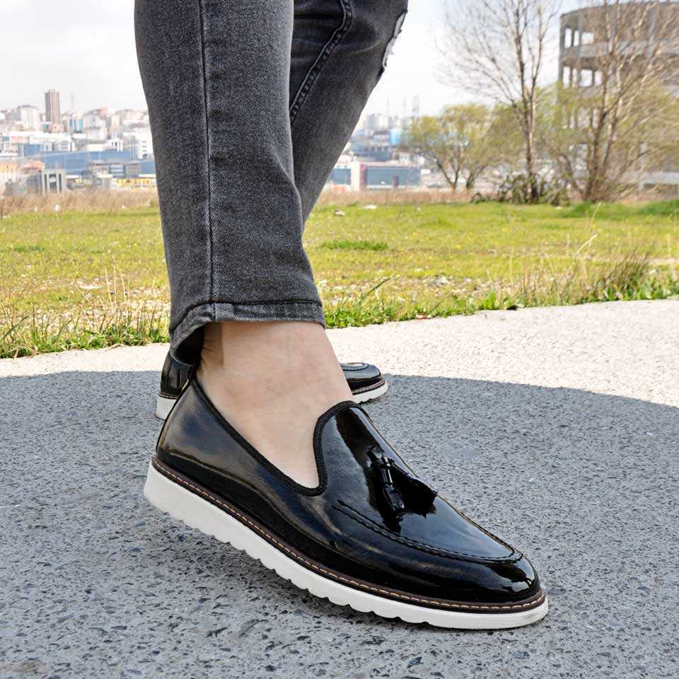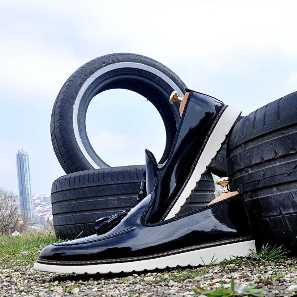 Çyr Püsküllü Parlak Ayakkabı Siyah Beyaz