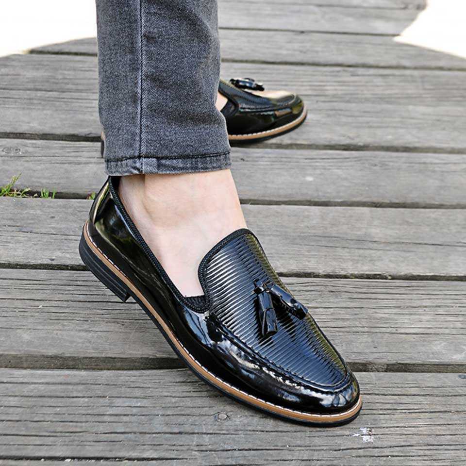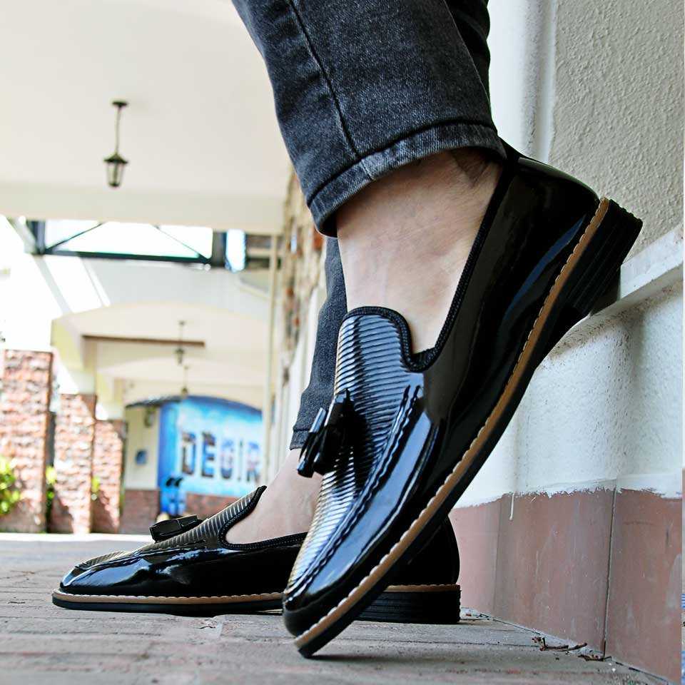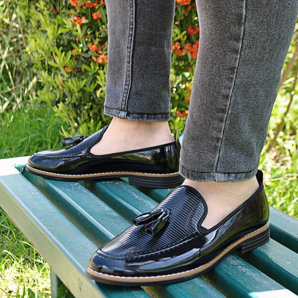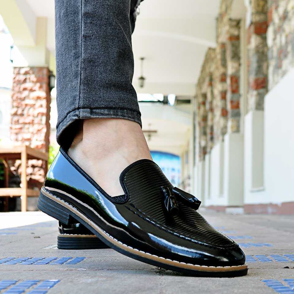 Taşkın Çizgili Püsküllü Erkek Ayakkabı Parlak Siyah