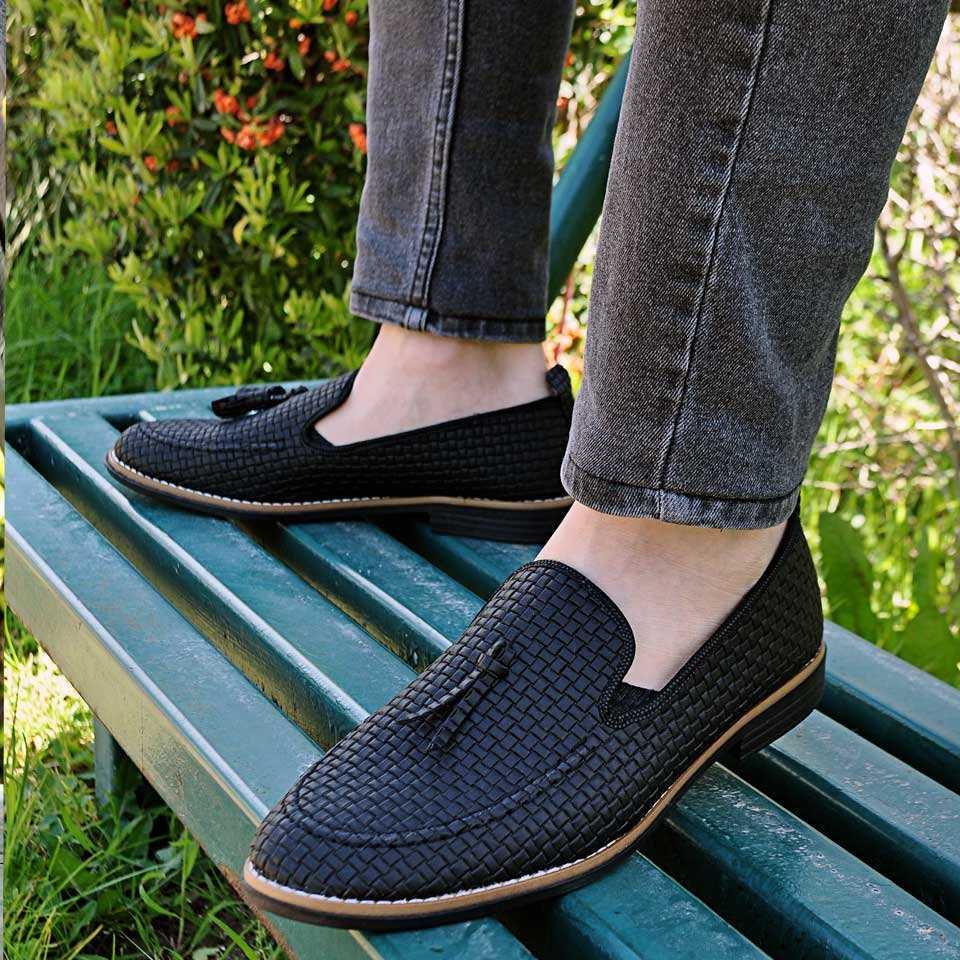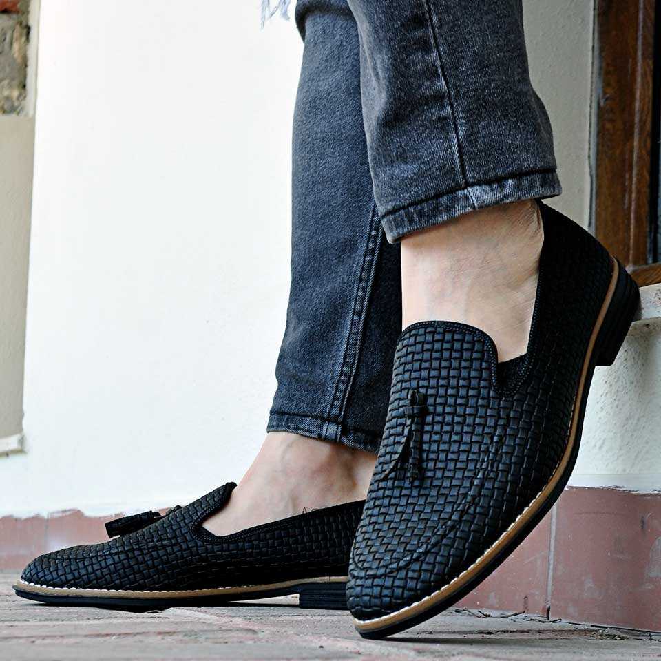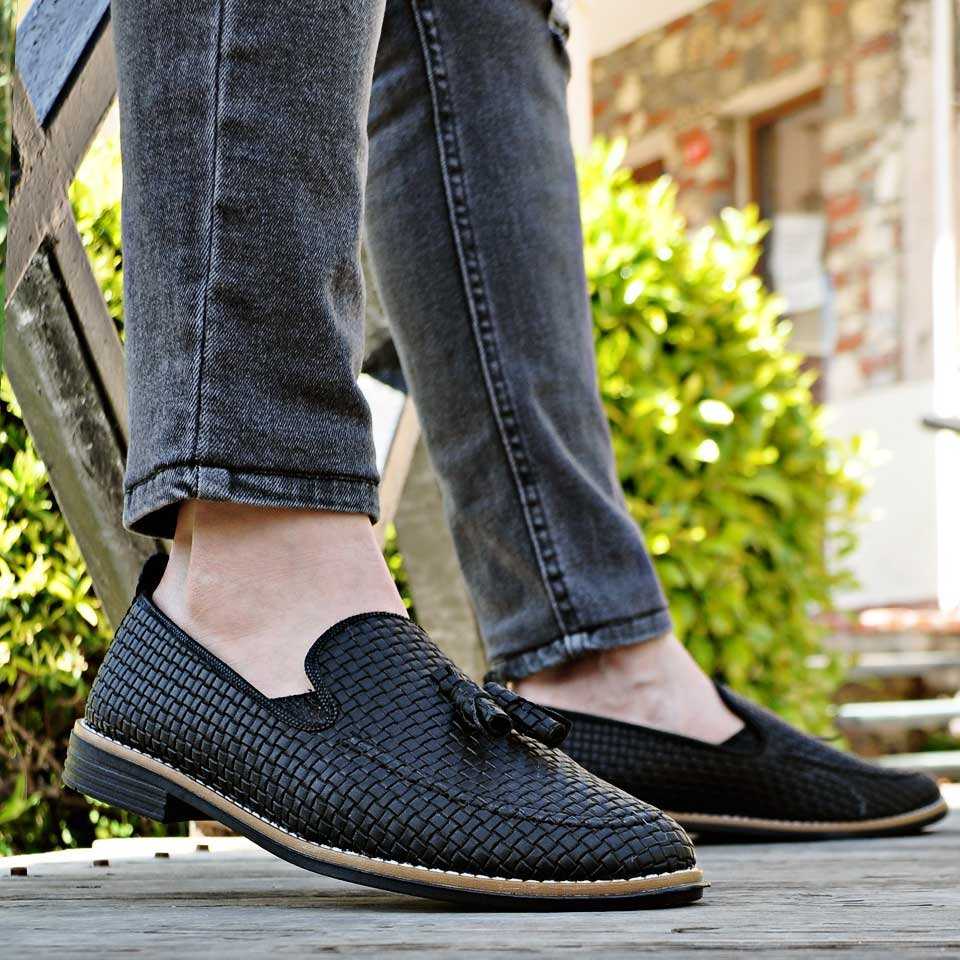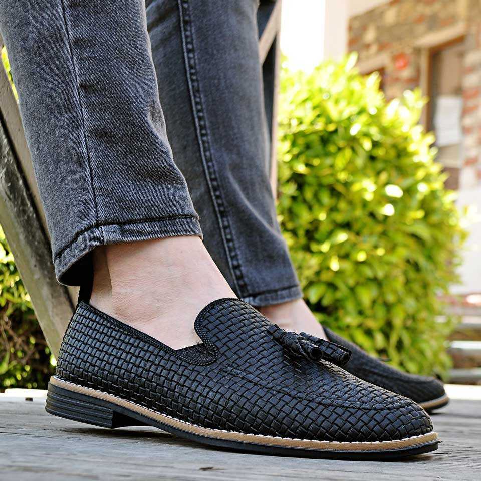 Taşkın Hasır Püsküllü Erkek Ayakkabı Mat Siyah