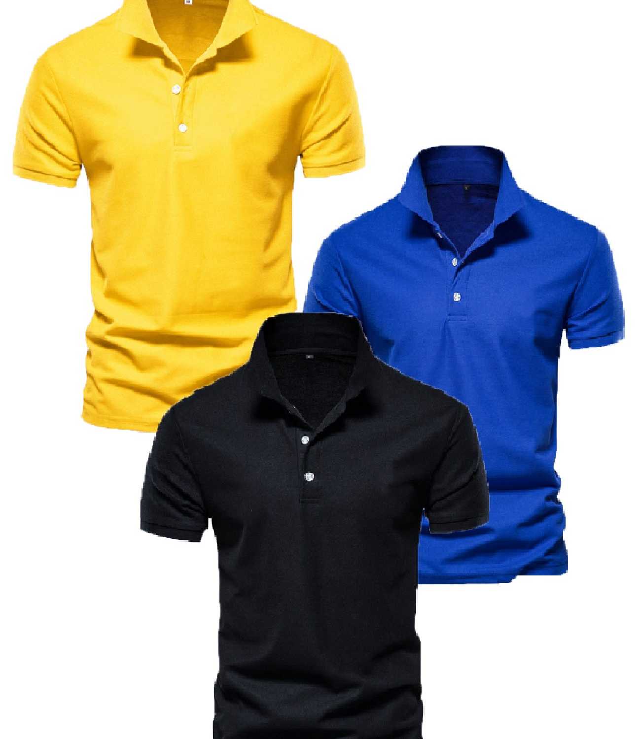 3 Adet Polo Yaka Tişört Siyah Sarı Mavi