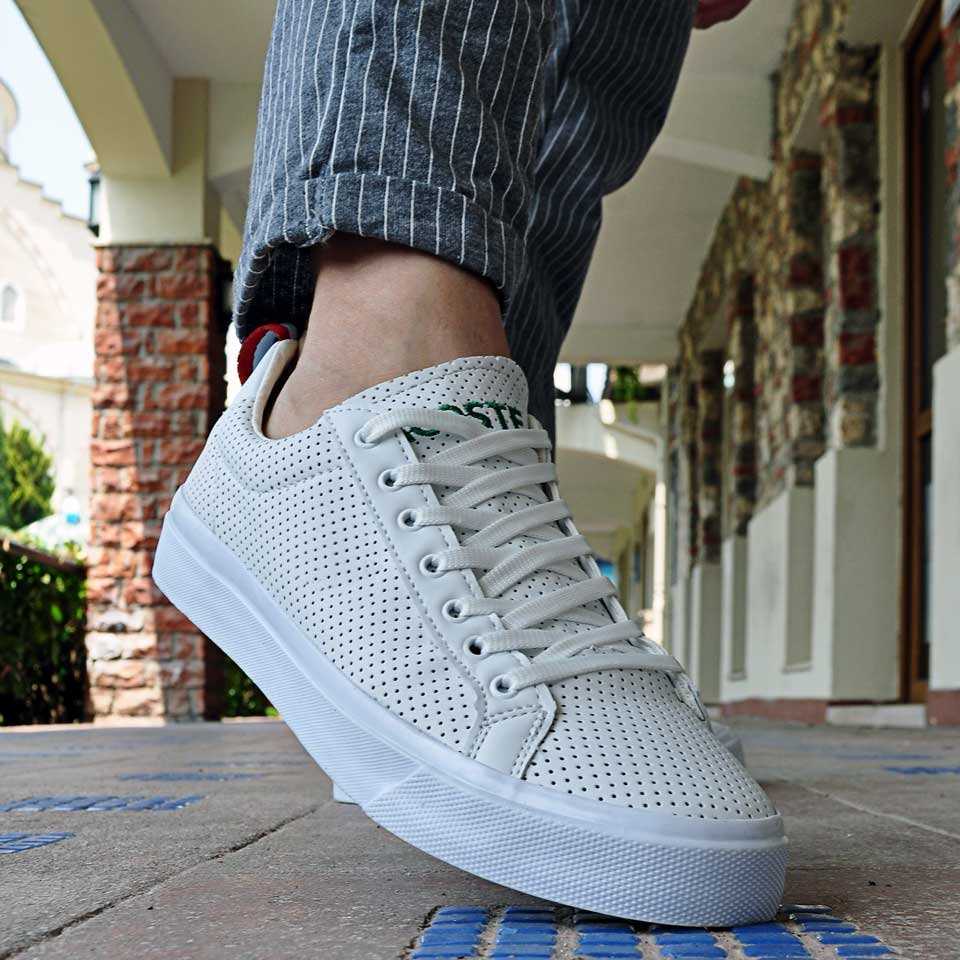 OSTE Lazer Delikli Erkek Ayakkabı Beyaz