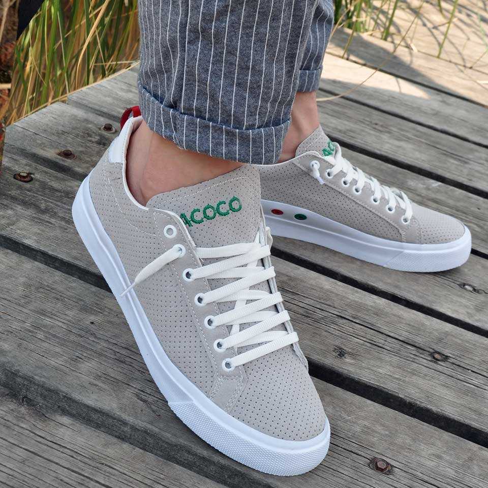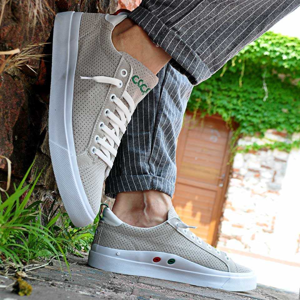 OSTE Lazer Delikli Erkek Ayakkabı Taş - Beyaz