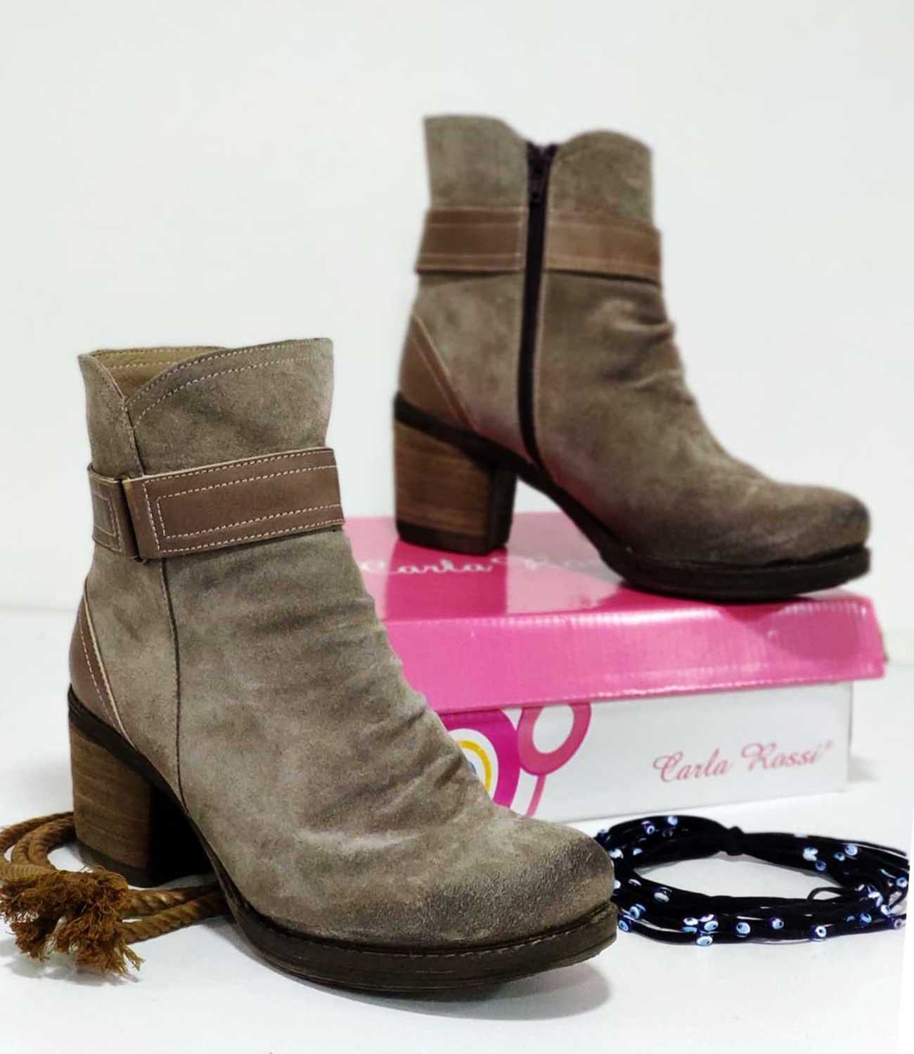 Kalın Topuk Fermuarlı kadın Bot Vizon