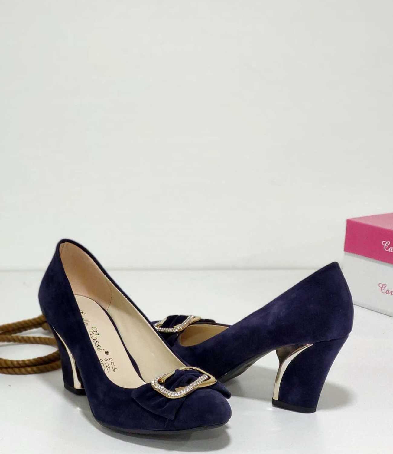 Fiyonk Tokalı Lacivert Süet Topuklu Kadın Ayakkabı