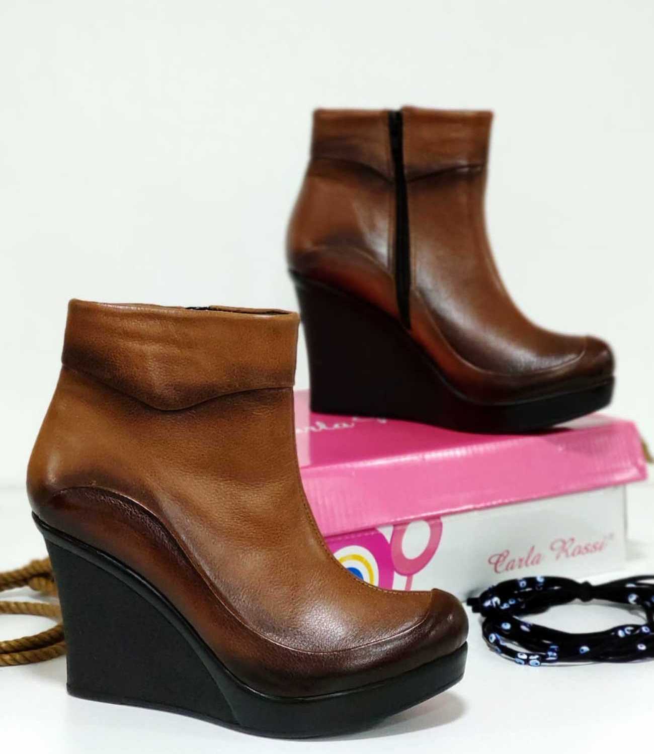 Dolgu Topuk Düz Kadın Bot Taba