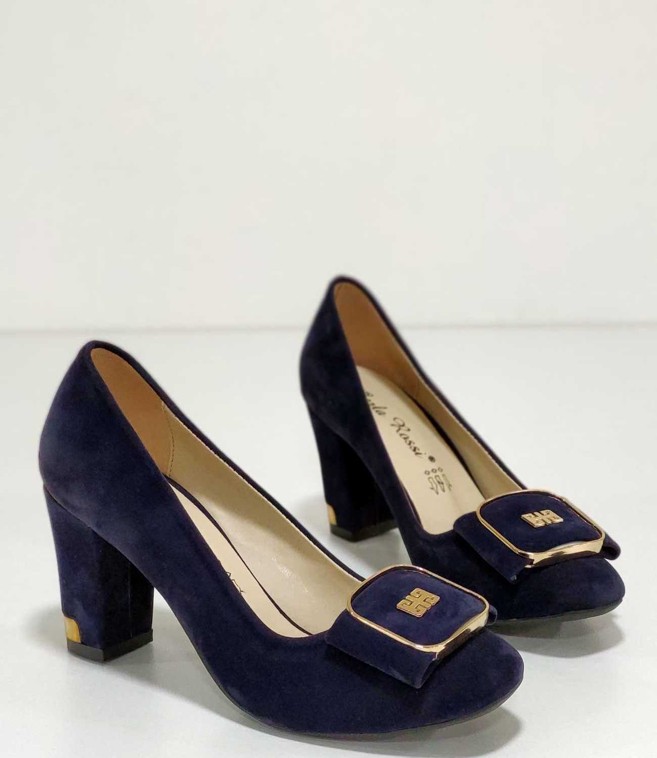 Kare Tokalı Topuklu Kadın Ayakkabı Lacivert