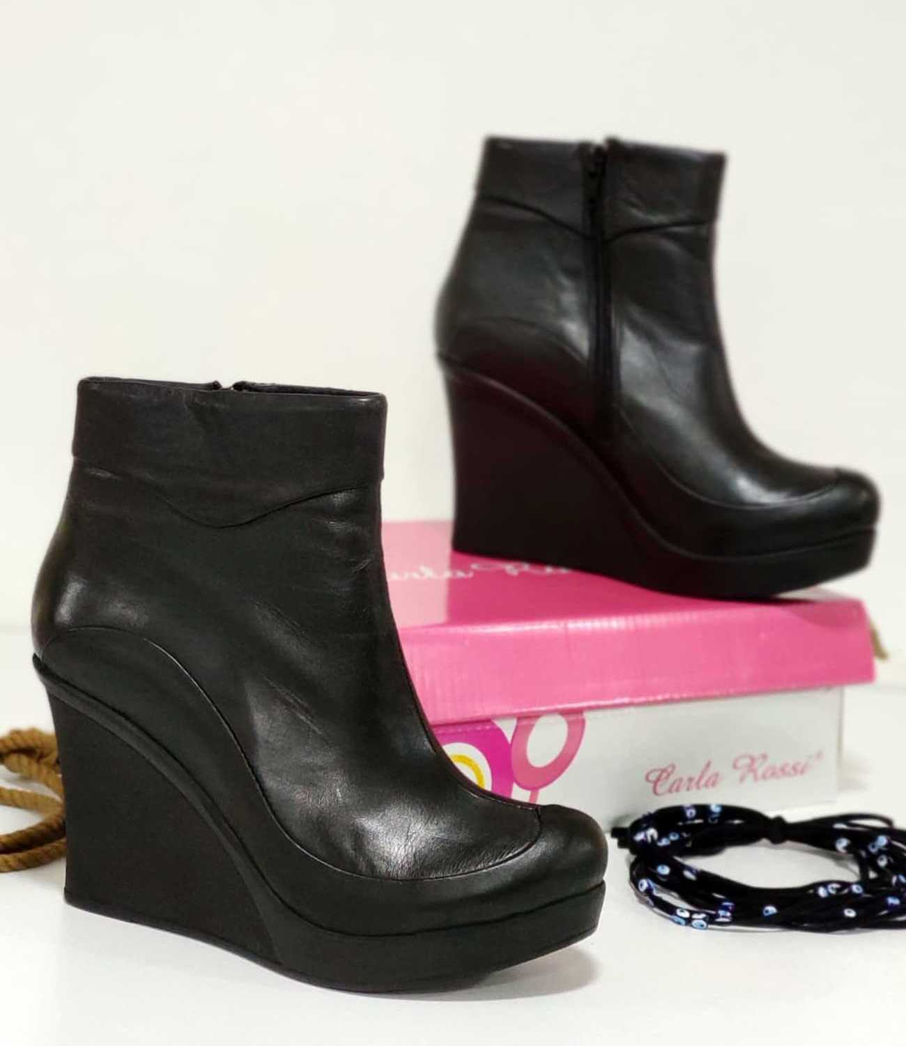 Dolgu Topuk Düz Kadın Bot Siyah