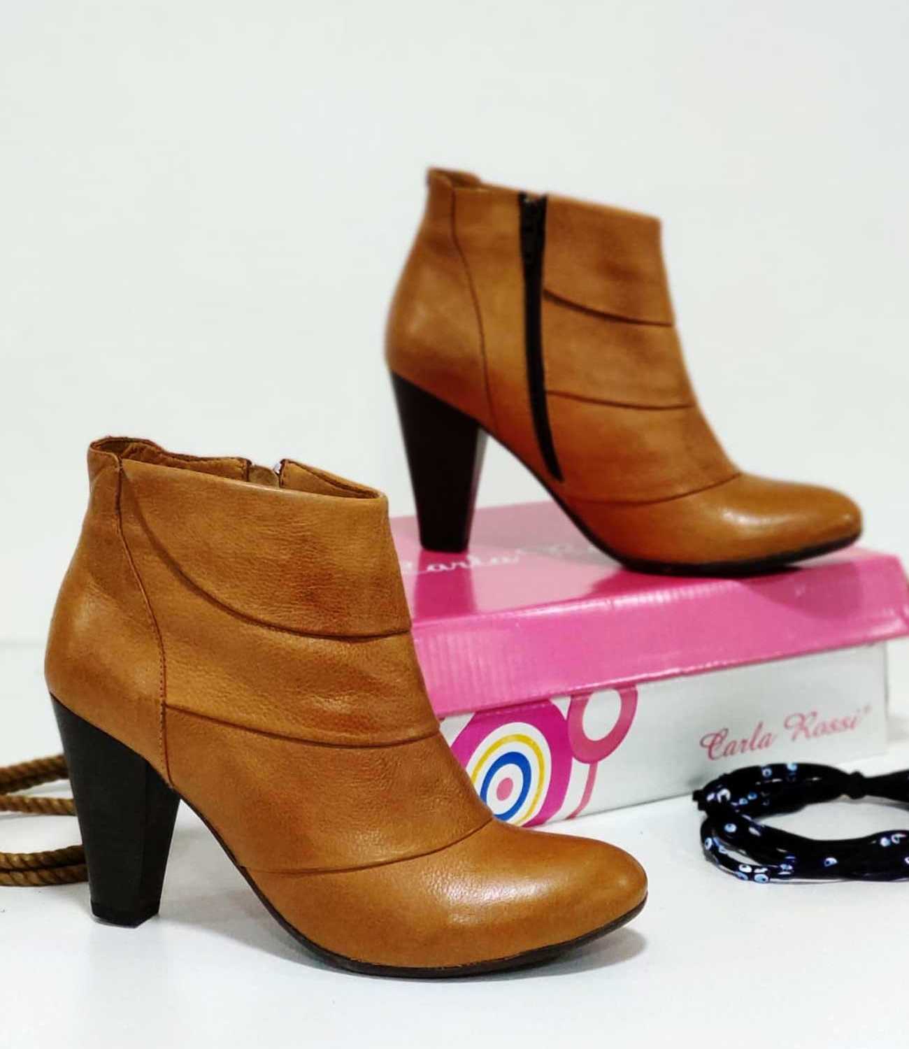 Kısa Topuk Fermuarlı Kadın Bot & Bootie Taba