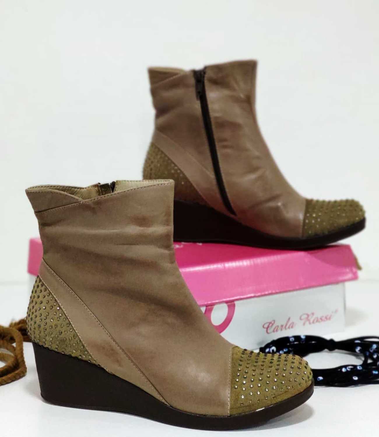 Dolgu Topuk Yıldız Desenli Fermuarlı Bot Vizon
