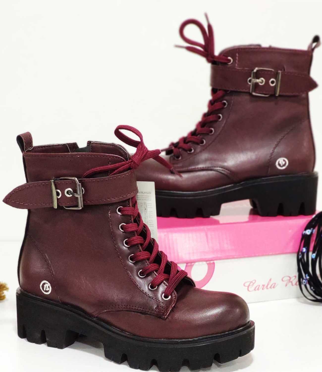 Kemer Tokalı Fermuarı Kadın Bot Bordo