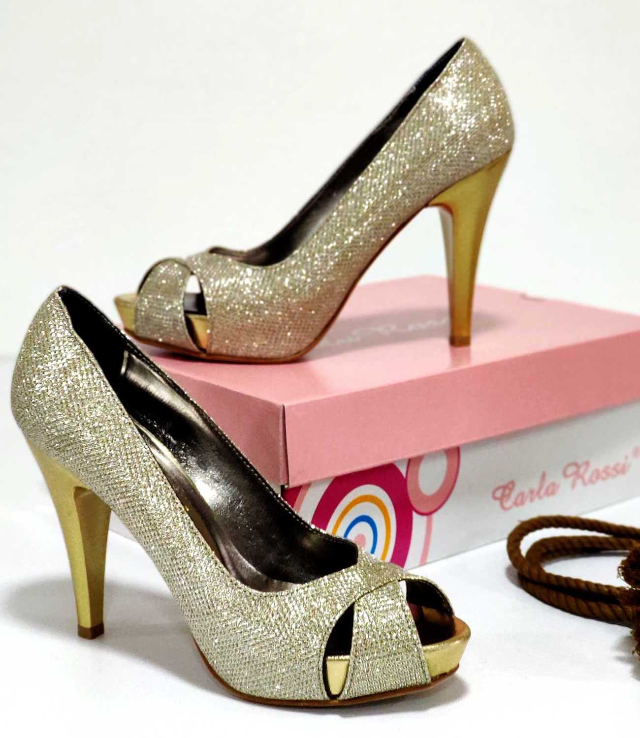 Çapraz Bağlı Önü Açık Topuklu Altın