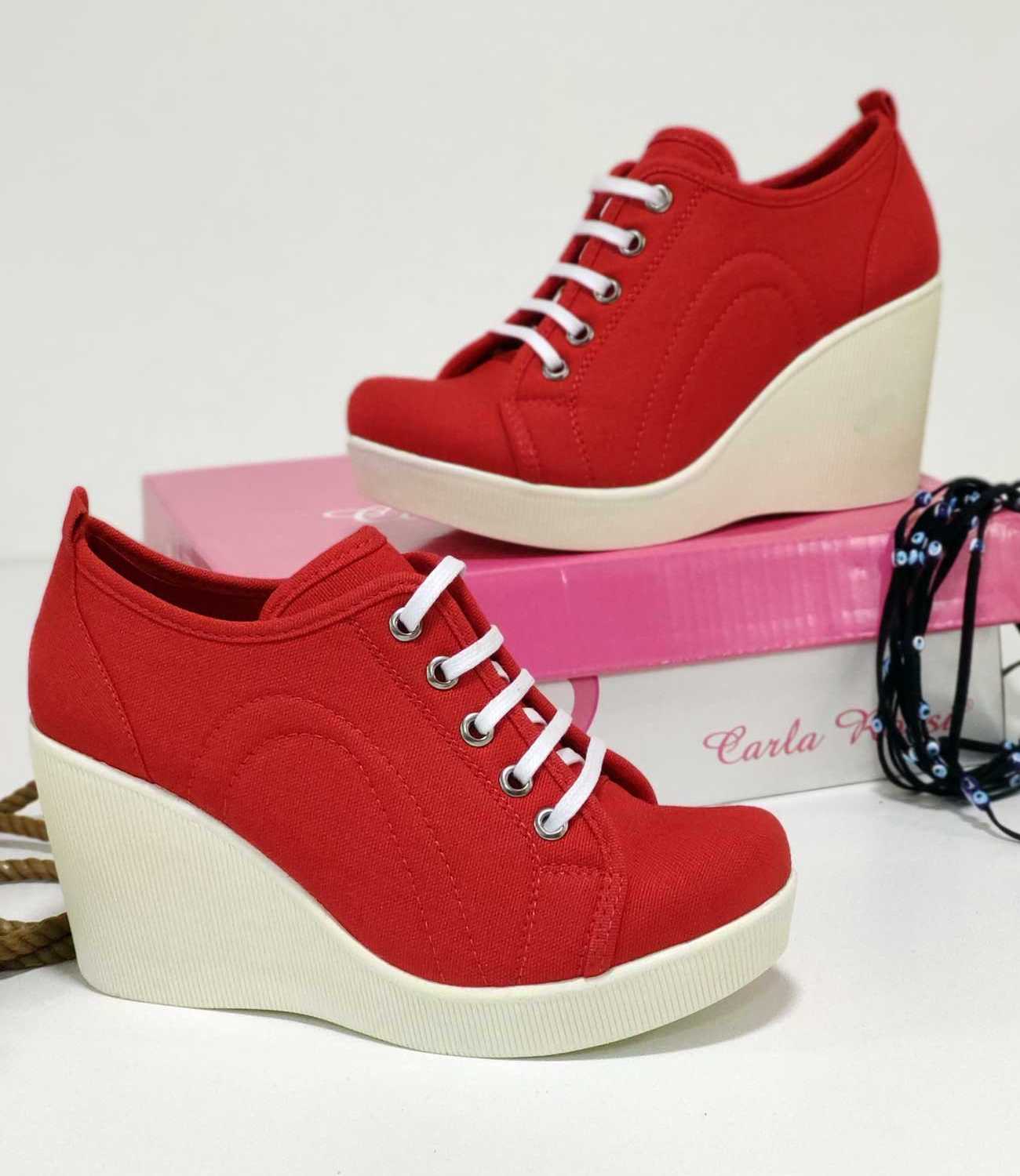 Yüksek Dolgu Keten Kadın Ayakkabı Kırmızı
