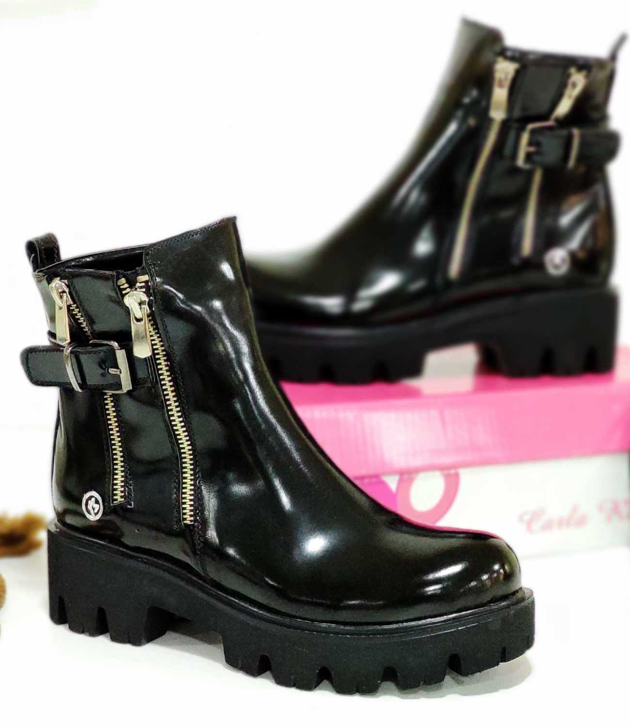 Çift Fermuarı Yüksek Taban Kadın Bot Siyah