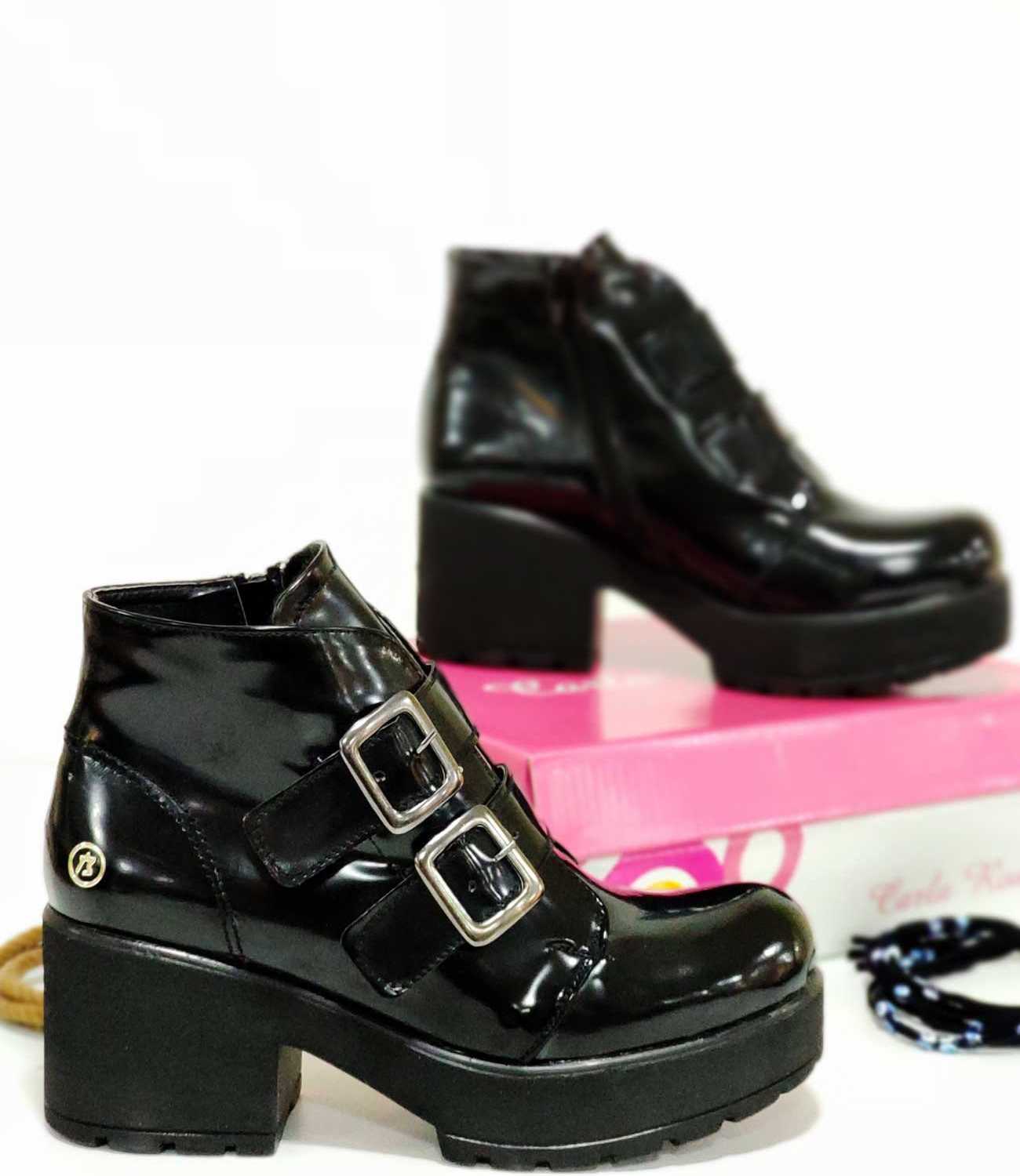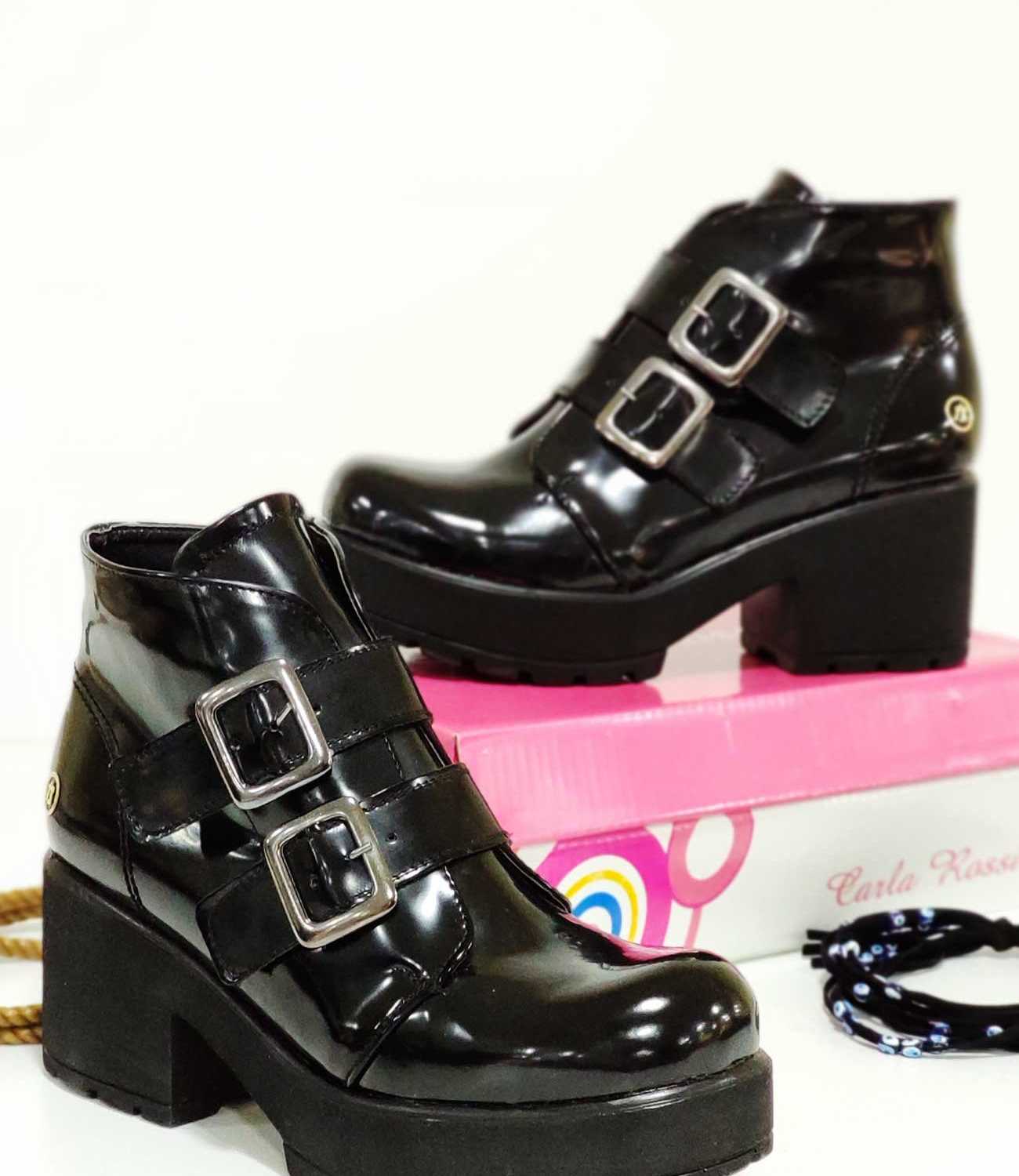 Çift Kemer Tokalı yüksek Taban Kadın Bot Siyah