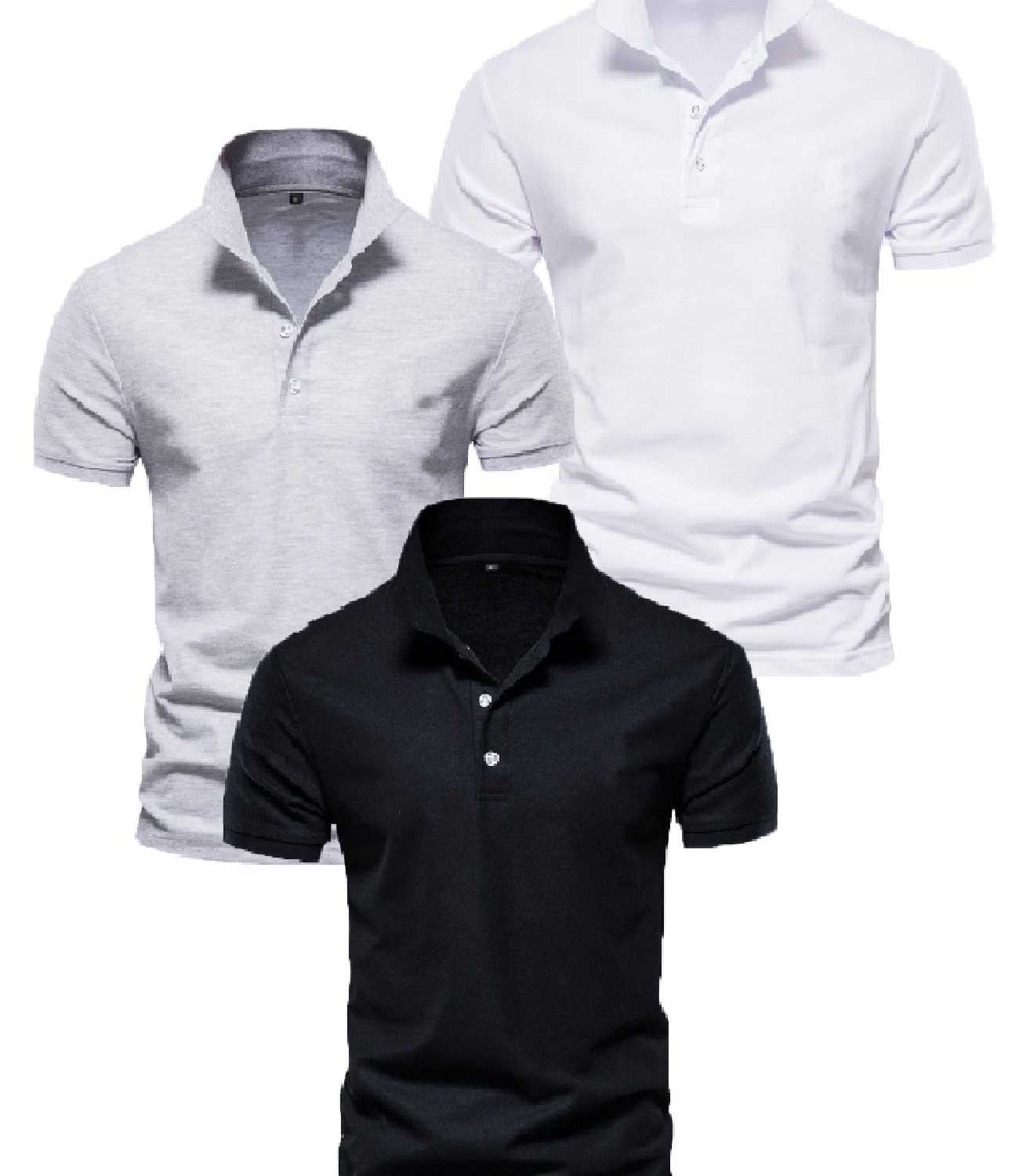 3 Adet Polo Yaka Tişört Siyah Gri Beyaz