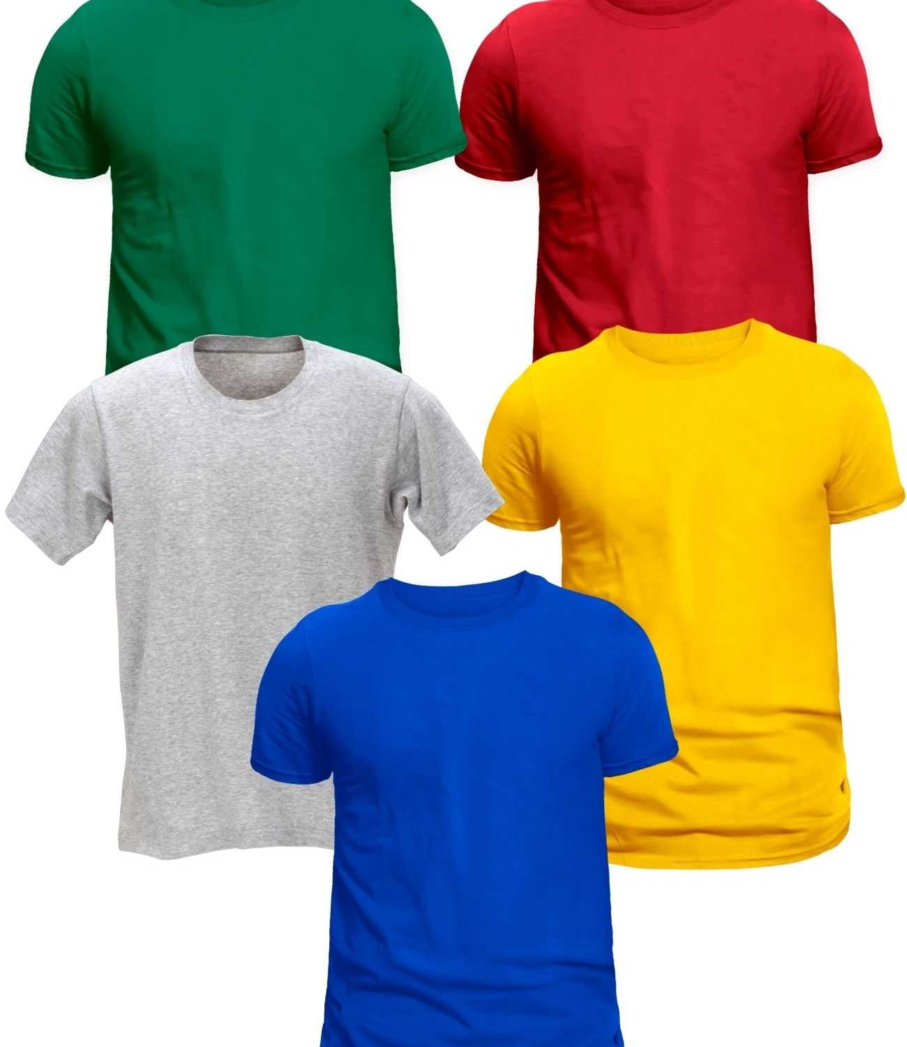 5 Adet Bisiklet Yaka Tişört Yeşil Bordo Gri Sarı Mavi