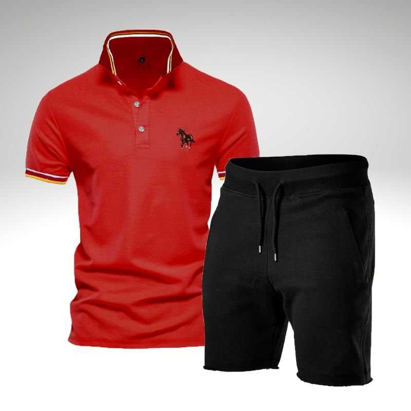 Siyah Şort ve Kırmızı Polo Yaka Tişört