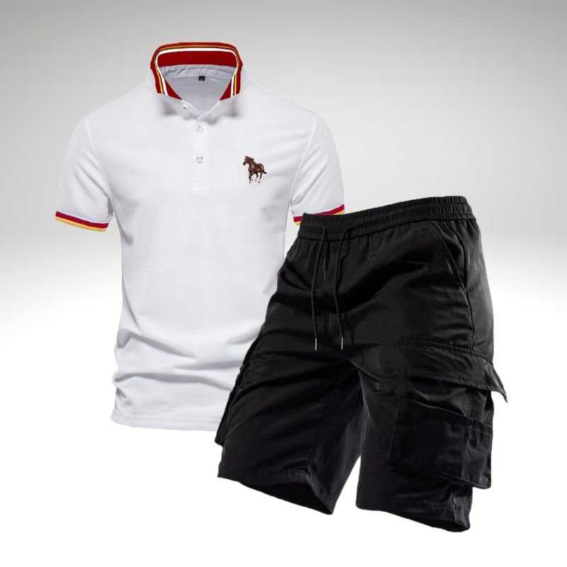Beyaz Polo Yaka T-Shirt ve Siyah Kapri