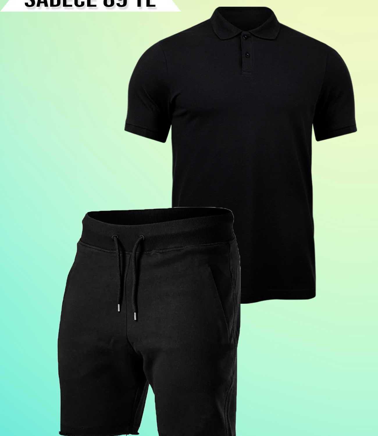 Siyah Düz T-Shirt ve Yan Cepli Şort