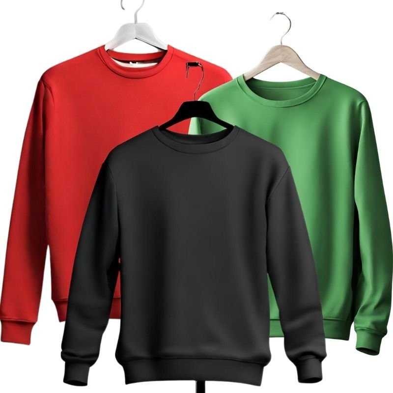 3 Adet Bisiklet Yaka Sweat Siyah Kırmızı Yeşil