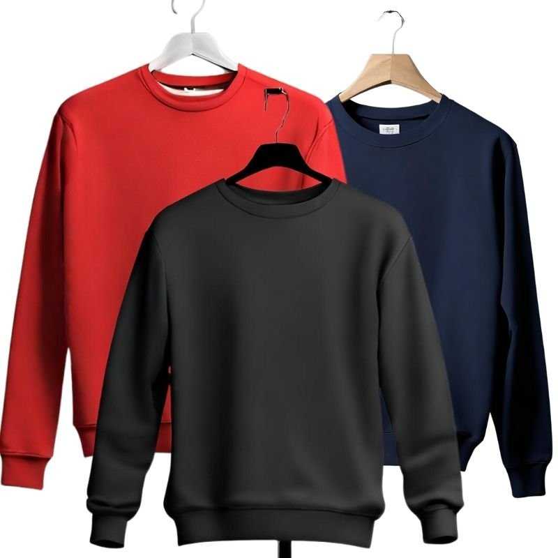 3 Adet Bisiklet Yaka Sweat Siyah Kırmızı Laci