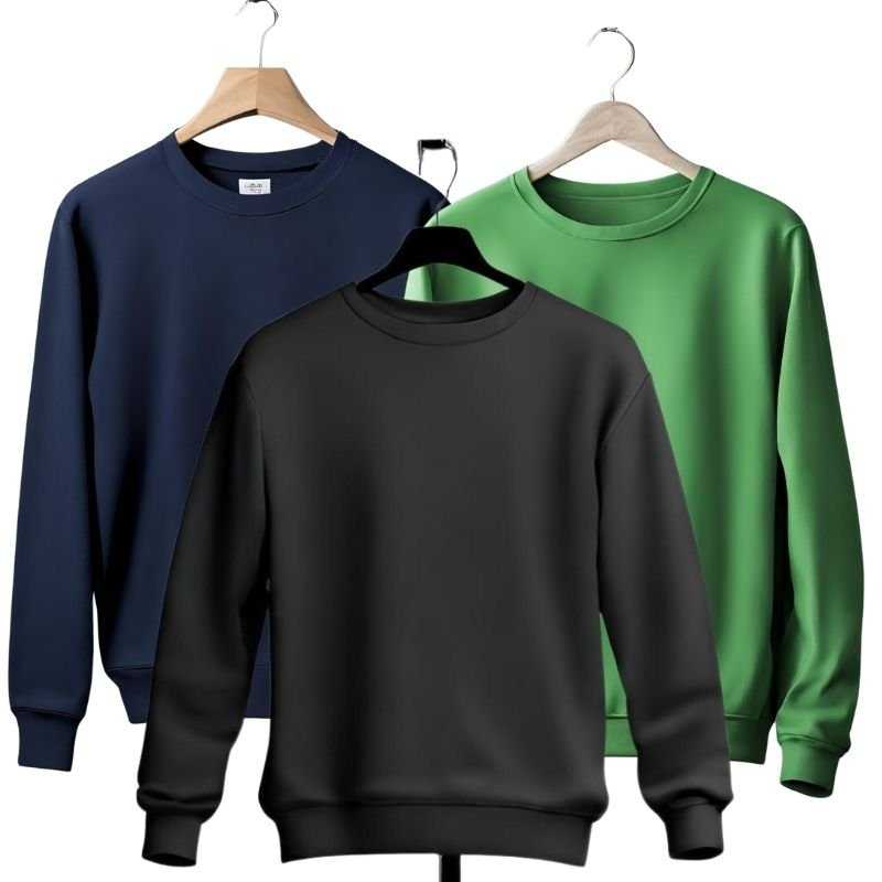 3 Adet Bisiklet Yaka Sweat Siyah Yeşil Laci
