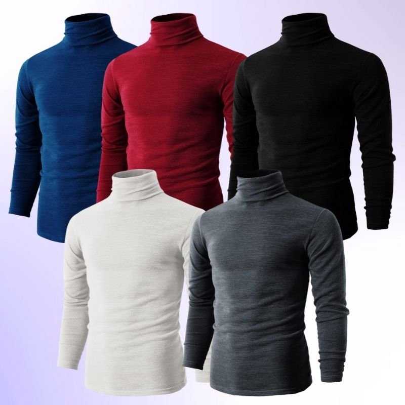 Bordolu 5 Adet Boğazlı Kazak (Siyah - Beyaz - Bordo - Mavi - Gri)