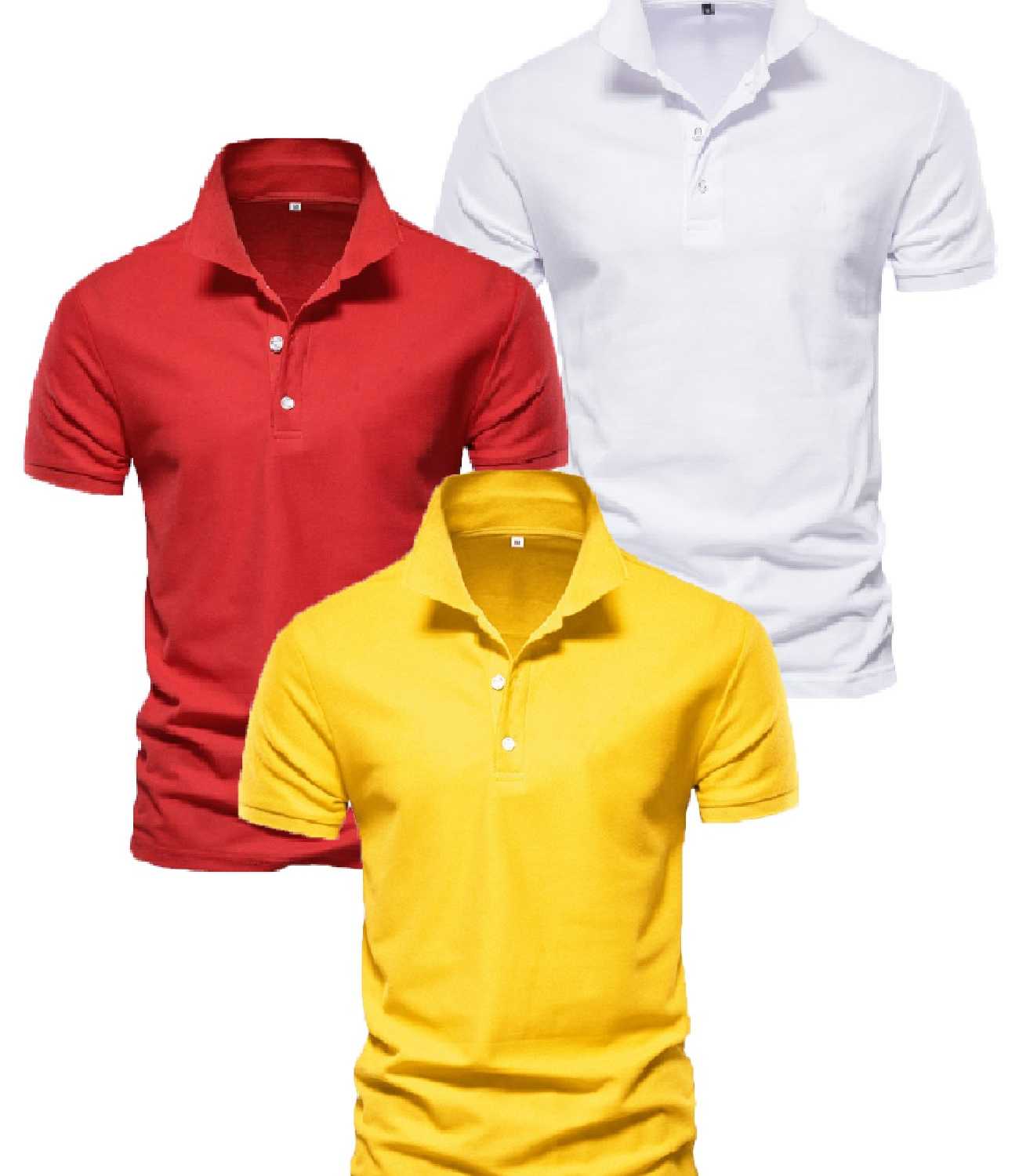 3 Adet Polo Yaka Tişört Sarı Kırmızı Beyaz
