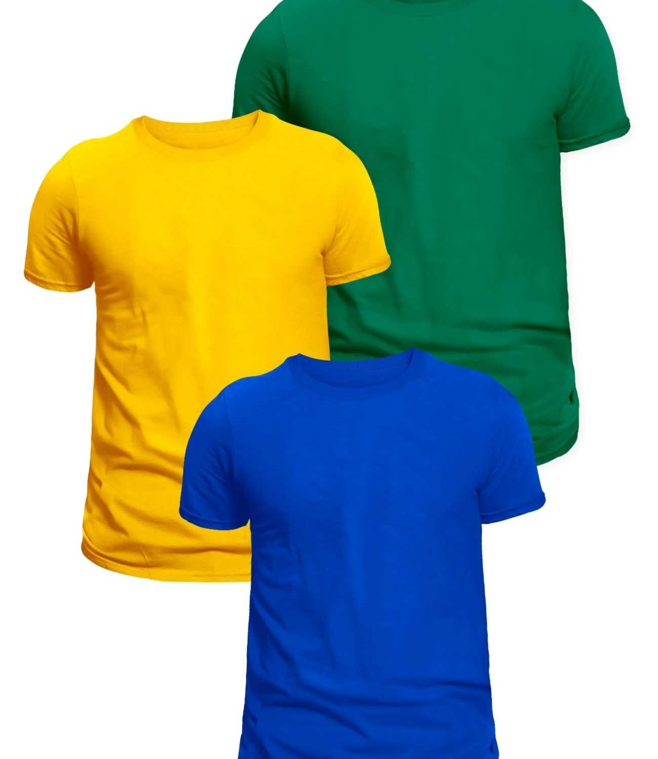 3 Adet Bisiklet Yaka Tişört Mavi Yeşil Sarı