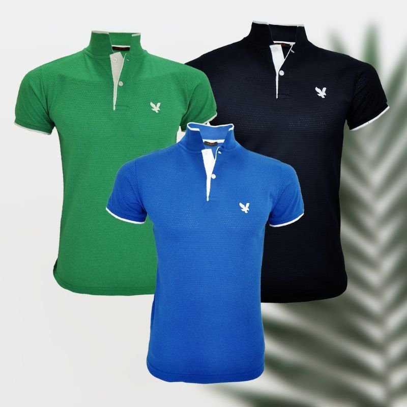 3 Adet Petek Desenli Polo Yaka Erkek Tişört (Siyah - Yeşil - Mavi)