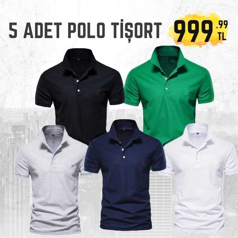 5 Adet Polo Yaka Tişört Siyah Lacivert Gri Beyaz Yeşil