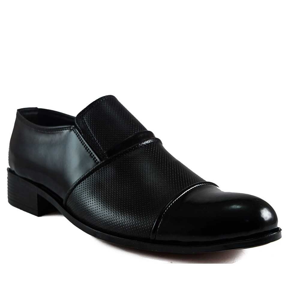 KND15 Erkek Klasik Ayakkabı Siyah Rugan Lazer Baskılı